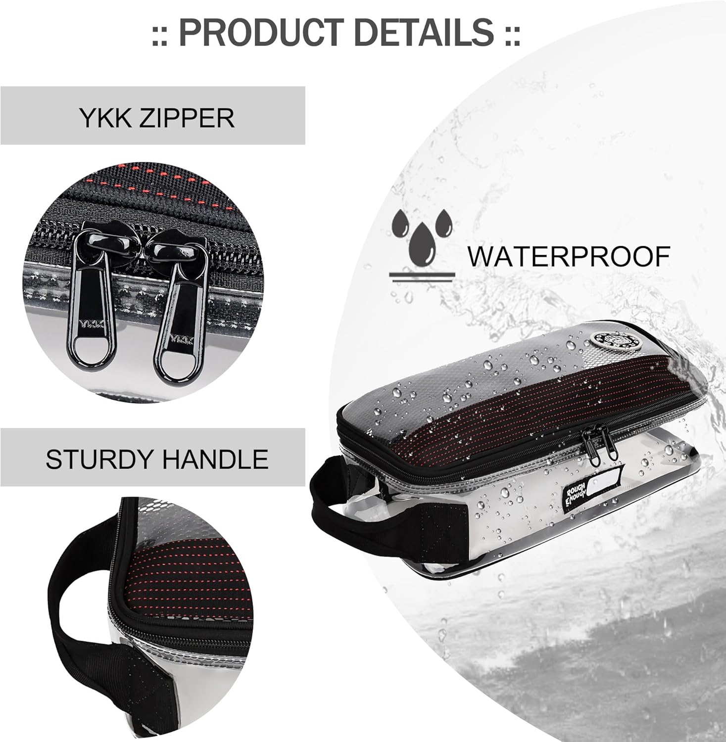 High Quality Transparent Travel Case : The clear toiletry bag is made of thick water resistant 0.6mm PVC fabric, easier to see what is in this travel clear toiletry bag and fast take out. Strong 2 way Japanese YKK zippers, durable USA mesh pockets and high density stitching make it built to last. The clear travel toiletry bag for for men with waterproof surface can prevent leakage of carry on luggage if liquids and cream leak out from bottles. Easy wipe clean or wash it with tap water and air dry