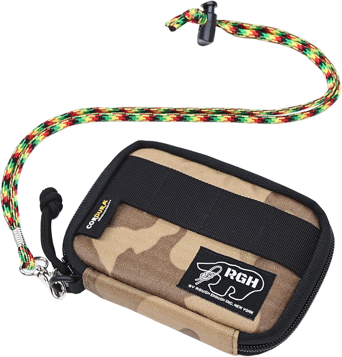 Rough Enough Card Holder Boys Wallet for Kids Teen Young Men with Neck Lanyard Zipper Coin Pocket Accordion Design Khaki Camo Cordura