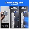 【Versatile 5-in-1 Design】- This shower panel combines multiple functions into one sleek and modern design. It features a rainfall and waterfall shower head, a handheld shower, 3 adjustable body jets, and a tub spout. You can easily switch between different shower modes to suit your preferences, providing a versatile and luxurious shower experience