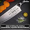 Durable & Ergonomic Full Tang Design: Our knife boasts a precise 14° cutting edge, a razor-thin 0.2 mm blade, and a well-balanced weight of 236 g. Crafted from German EN 1.4116 high carbon stainless steel, this professionnal chef knife outshines other kitchen knives with its exceptional sharpness. The handle is made from polished Pakka wood and secured with 3 rivets for added durability. The whole knife is further ergonomically designed to fit snugly in your palm, saving time and effort