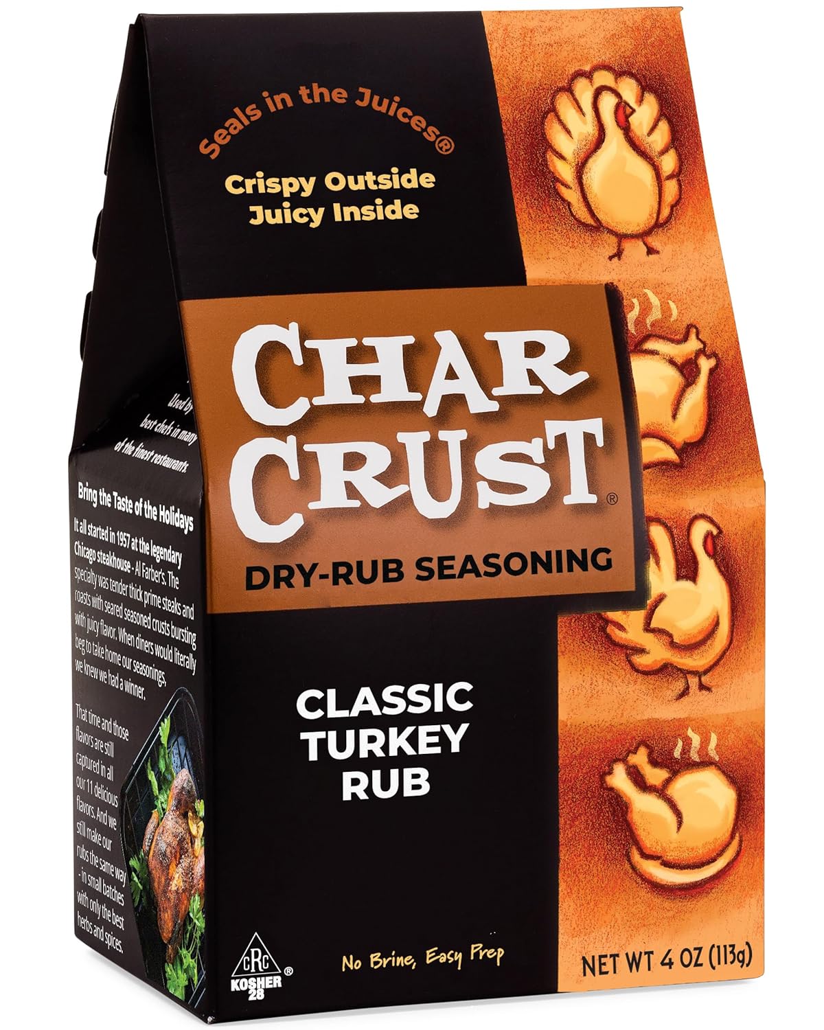 Char Crust’s NEW Classic Turkey Roasting Rub is a no brine, no prep turkey seasoning that delivers crispy on the outside, juicy and flavorful on the inside turkey every time. And Char Crust makes it so easy just coat and roast! One package good for a whole turkey.