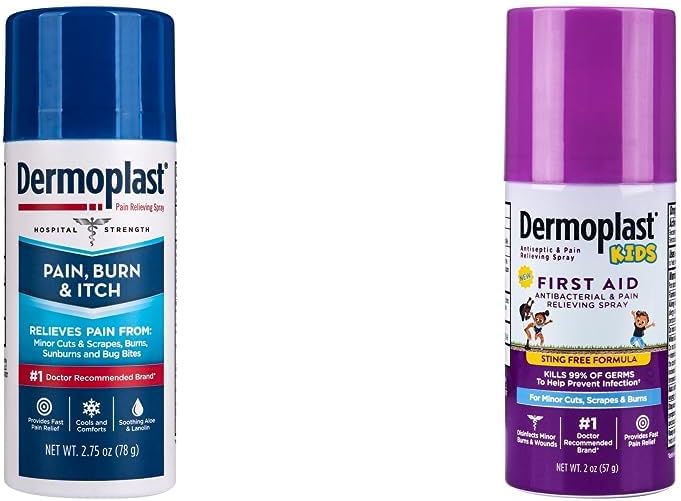 Relieve pain fast: Childhood and family life are full of little irritations. Use Dermoplast pain and itch spray to quickly relieve the pain and itch of minor cuts, scrapes, burns, insect bites, and sunburn