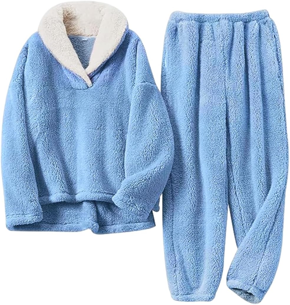 Women's Fluffy Loungewear Sleepwear Lounge Casual Pajamas Sets Loose Long Sleeve Fleece Pullover and Pants Set