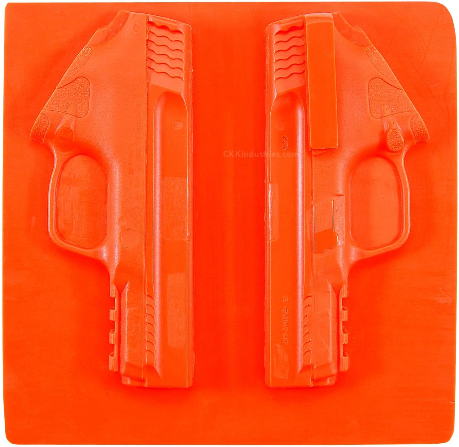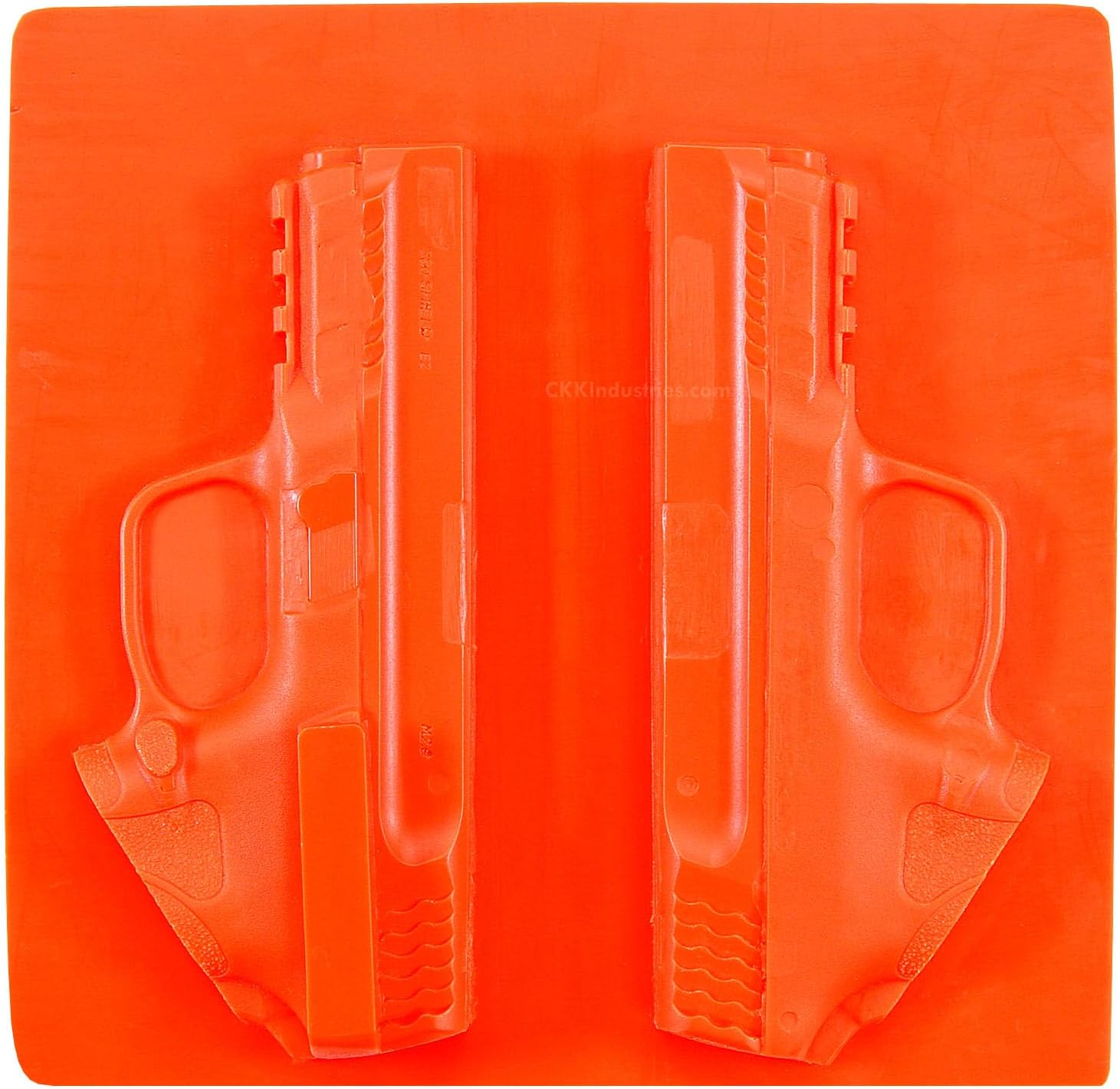 Solid in construction with no moving parts: Each one is colored (Fed-Std-595B 12199) Blaze Orange to meet all federal safety requirements. American Safety Props can be heated in the normal course of KYDEX holster making with little appreciable deflection, distortion, or deviation from the original model’s form and tolerance. American Safety Props natural, prepped and Split Board are made for hard-core holster making where precision and durability are king.