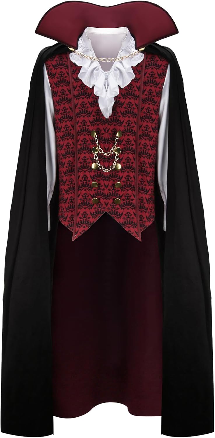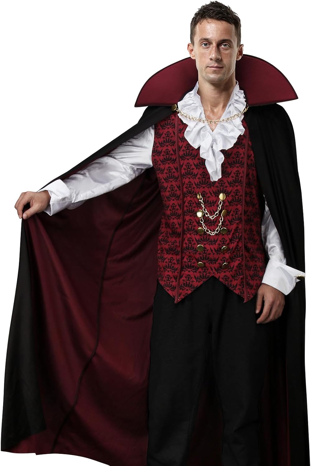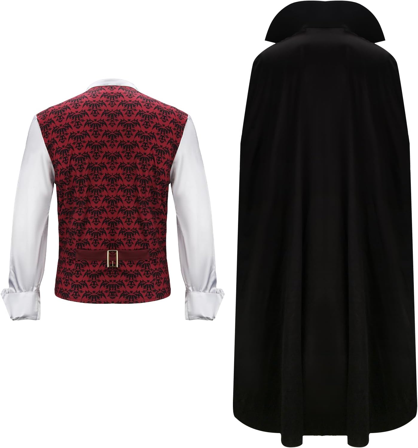 HLENOK Adult Men Devil Vampire Costume Shirt Cloak Outfit Medieval Renaissance Victorian Gothic Halloween Cosplay Long Cape