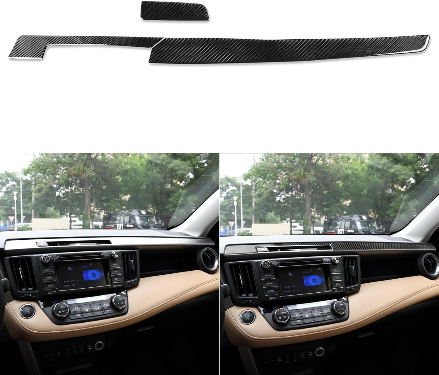 NVCNX Real Premium Carbon Fiber Car Dashboard Warning Light Switch Button Panel Cover Decal Compatible with Toyota RAV4 2013 2014 2015 2016 2017 2018 Interior Dash Trim Accessories 3PCS Black