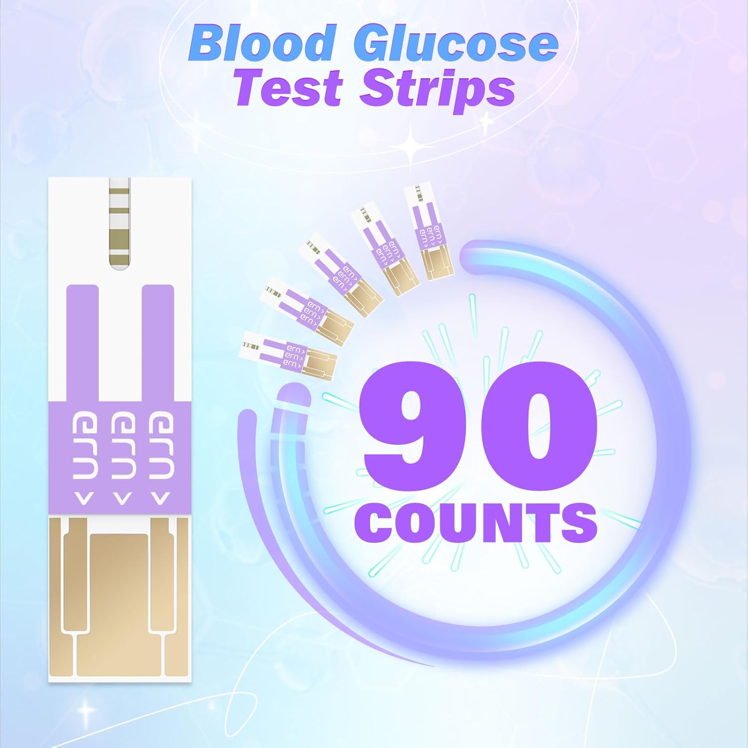 【Glucose Strips Set】- 3 boxes, 90 test strips per pack. Simple operations allow you to conduct self testing at home at any time, having a clear understanding of your health status to better manage and control.
