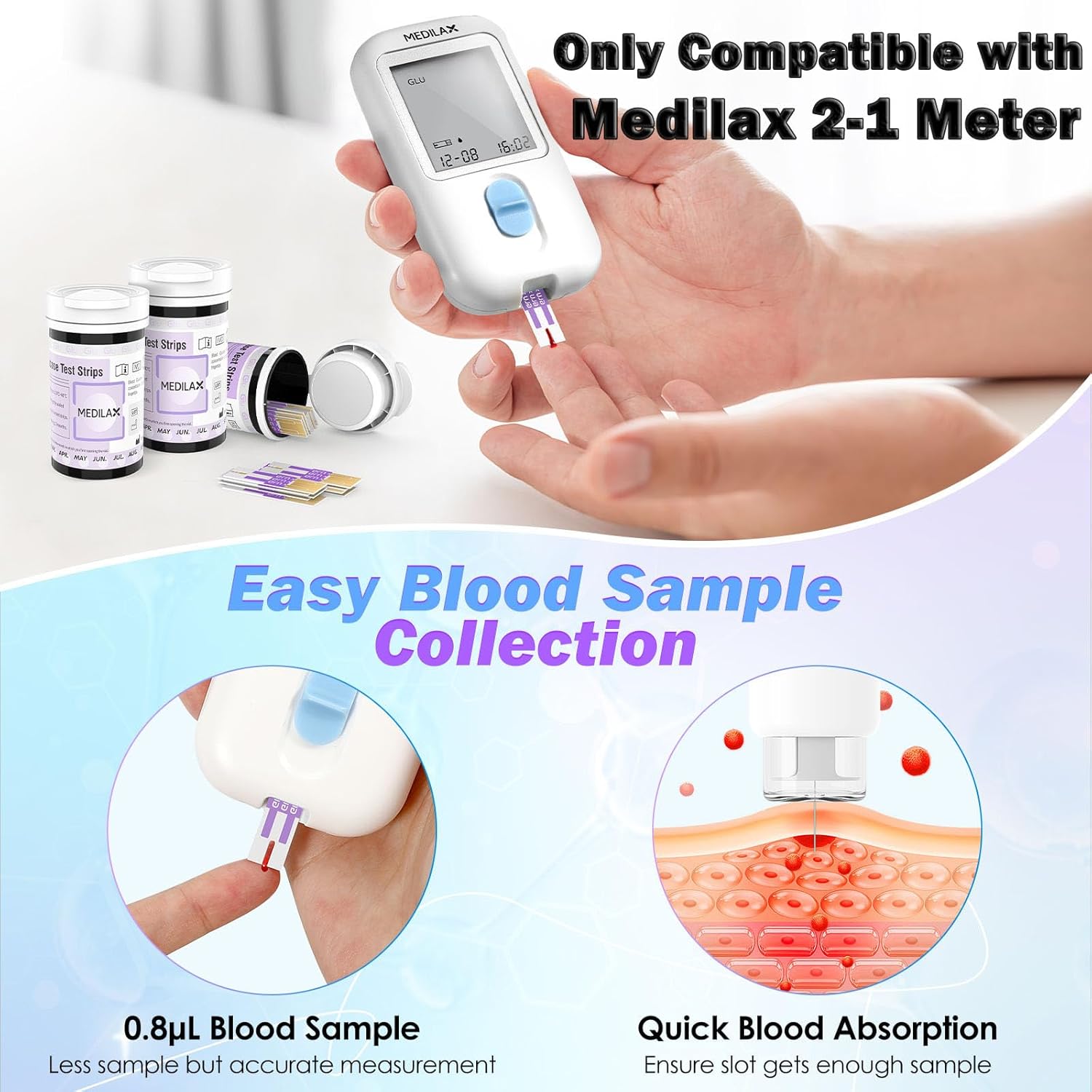 Medilax Blood Glucose Test Strips - 3 * 90 Count Only Compatible with Medilax Meter, 3 Boxes, 90 Test Strips Per Pack