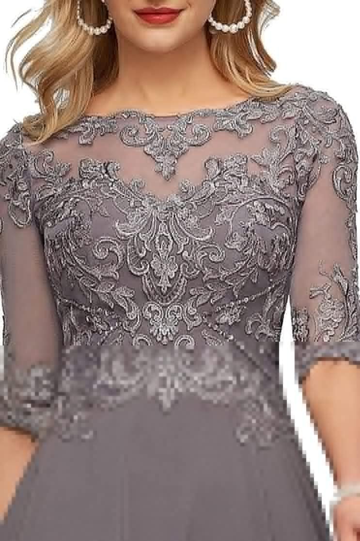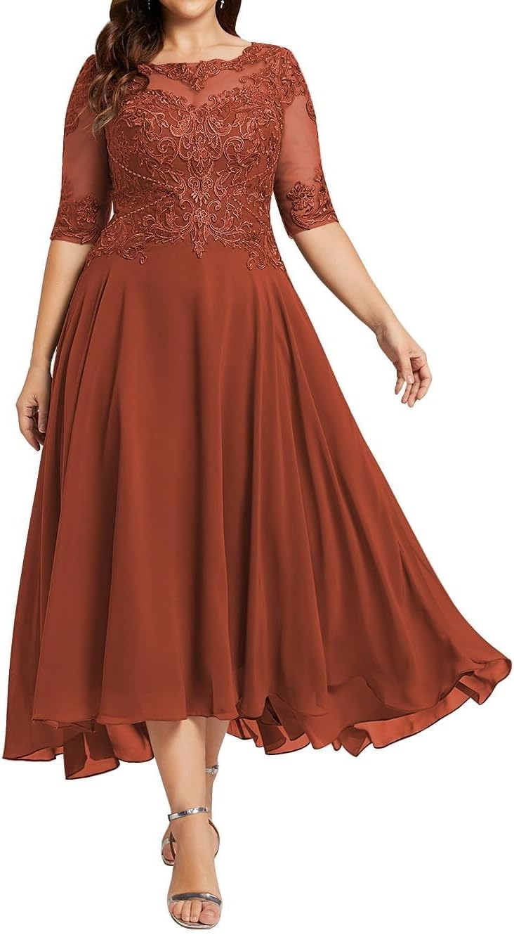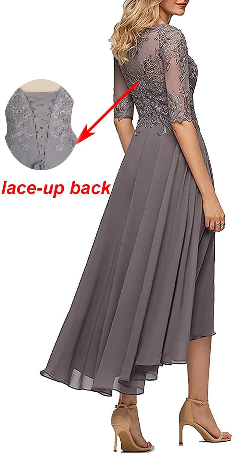 Women'sTea Length Chiffon Mother of The Bride Dresses with Sleeves Lace High Low Long Formal Evening Gowns