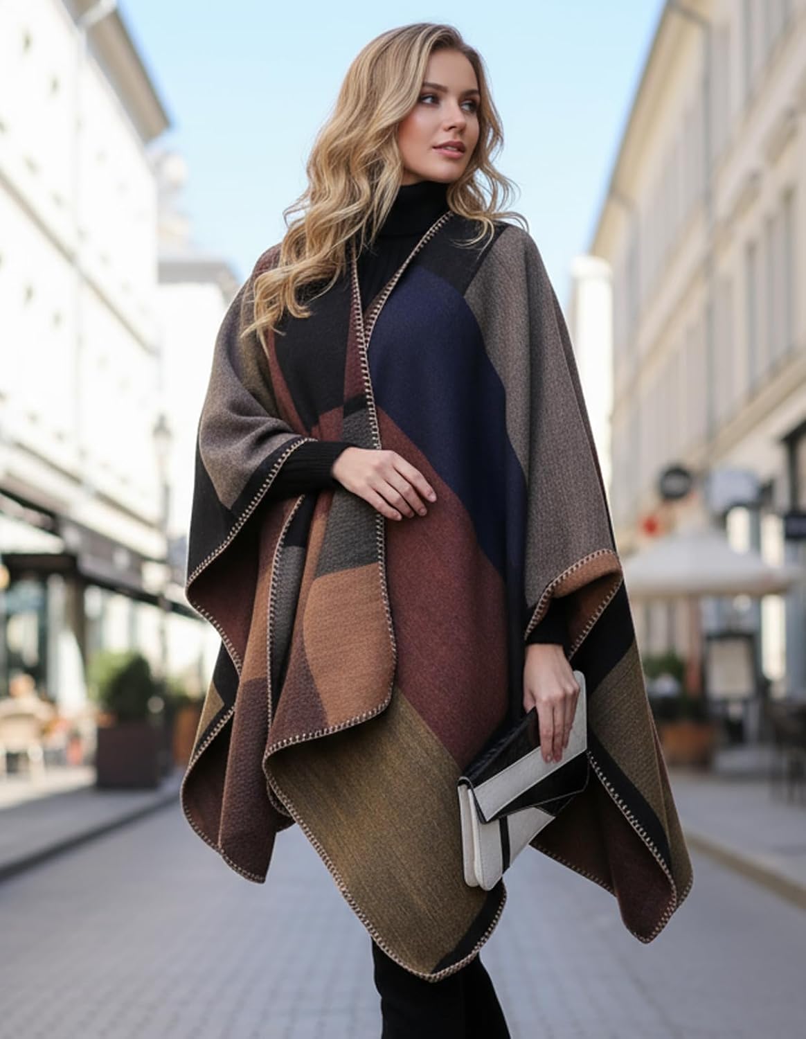 Women's Shawl Wraps Open Front Poncho Cape Oversized Sweaters Casual Cardigan Shawls for Fall Winter