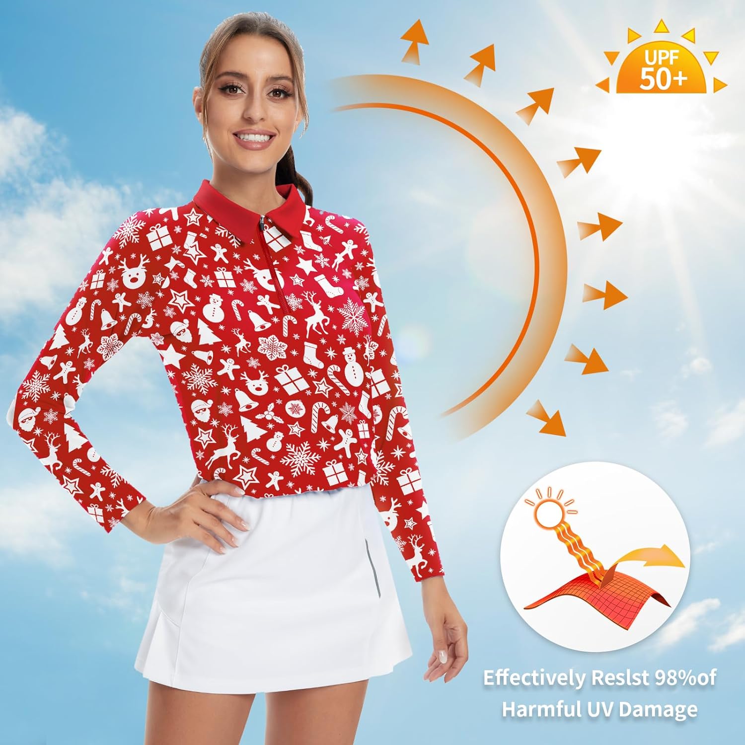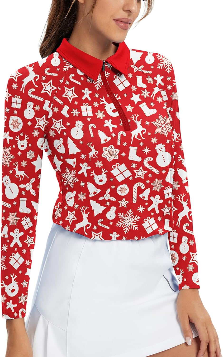 Soneven Womens Long Sleeve Golf Shirts Half Zip Moisture Wicking Print Golf Tops Tennis Shirts(XS-3XL)