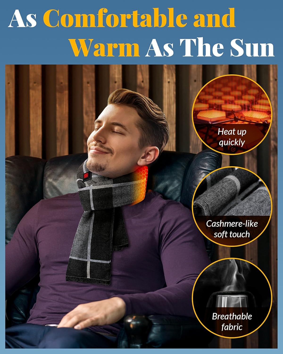 Graphene Heated Scarf for Women Men Rechargeable Battery Pack Electric Neck Heating Shawl Pad Accessory Winter Must Have Gift