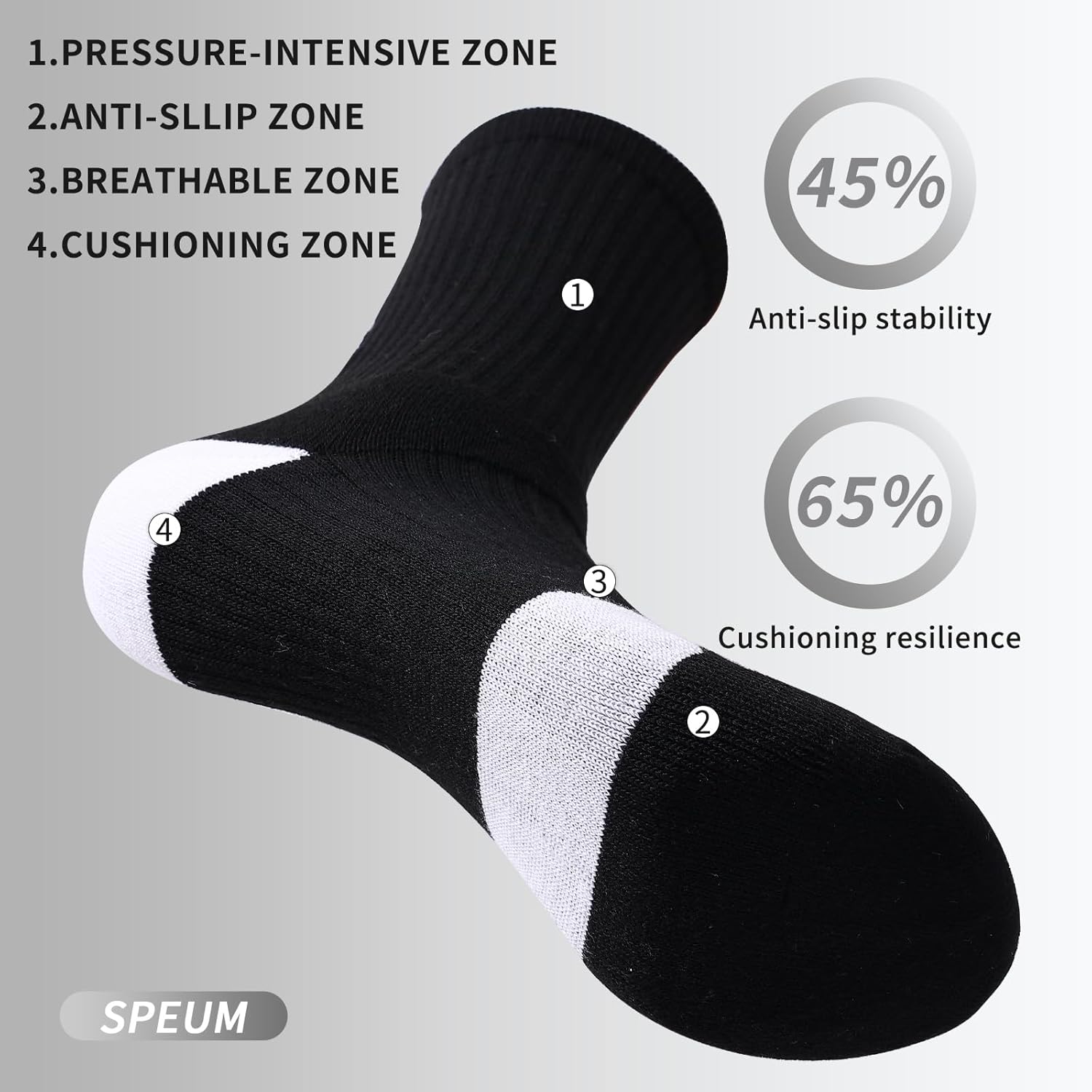 Speum Socks for Men,Basketball Mens Socks,Performance Cushioned Men's Athletic Crew Socks with Arch Compression for Cycling Basketball Running