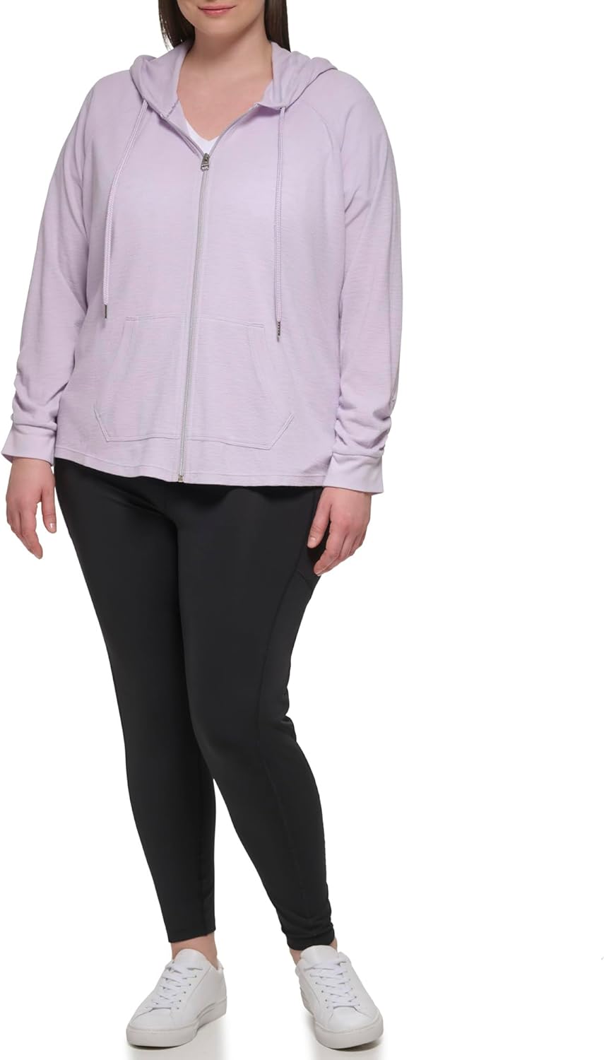 Calvin Klein Women's Premium Performance Ruched Long Sleeve Zip Up Hoodie (Standard and Plus)