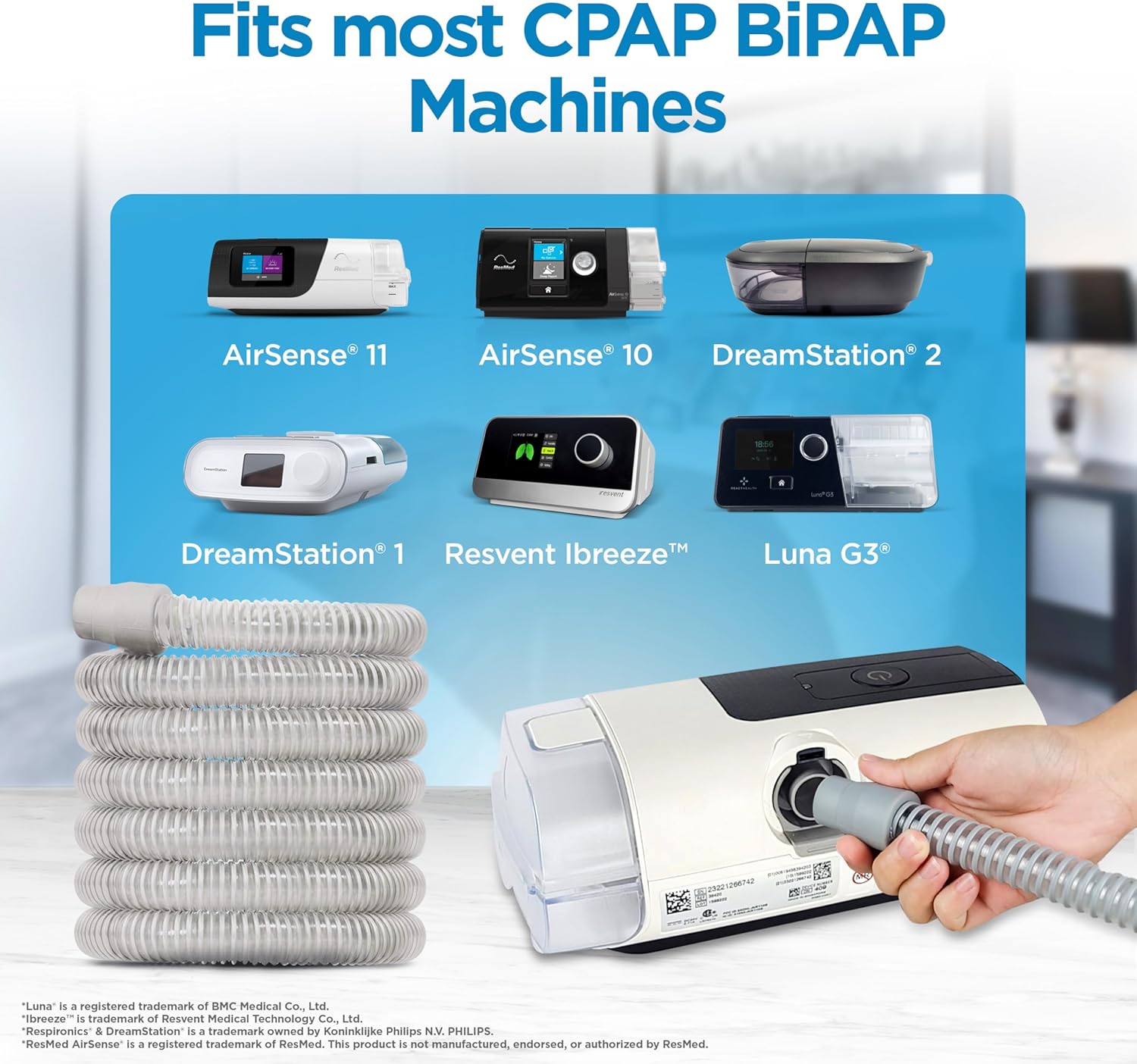Experience the added freedom of movement with the resplabs 10-Foot CPAP Hose—an extra-long, non-heated replacement tubing designed for comfort and flexibility. With standard 22mm cuff ends, it connects easily to most CPAP, BiPAP, and APAP machines for a hassle-free setup. Whether you're navigating a tall bed frame, using a wall-mounted setup, or simply prefer more mobility during sleep, this extended hose provides the reach you need. Durable and kink-resistant, it ensures steady airflow and consistent therapy all night long. An ideal addition to your CPAP supply kit—at home or while traveling.