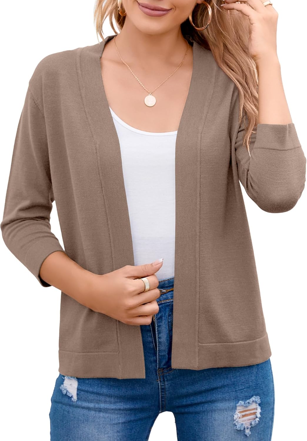 Bettysays Women's 3/4 Sleeve Open Front Cropped Cardigan Sweater Elegant Shrugs for Women