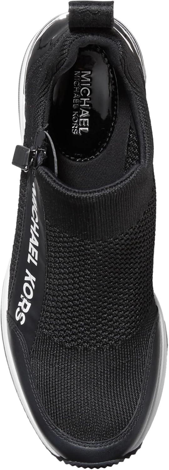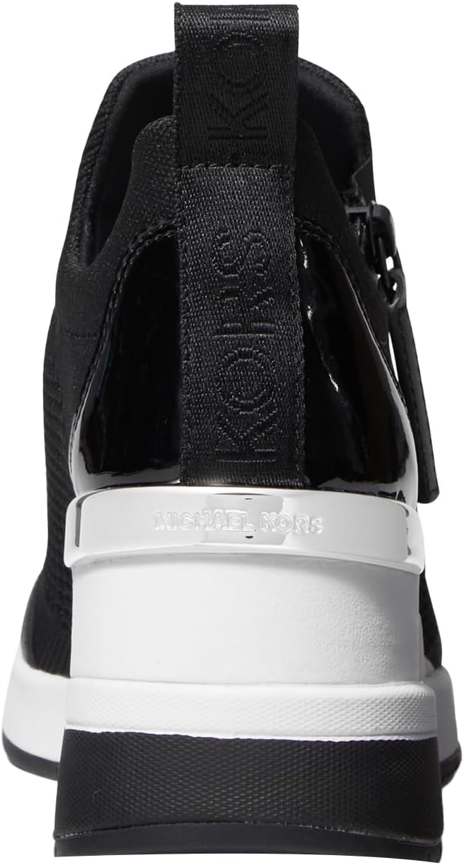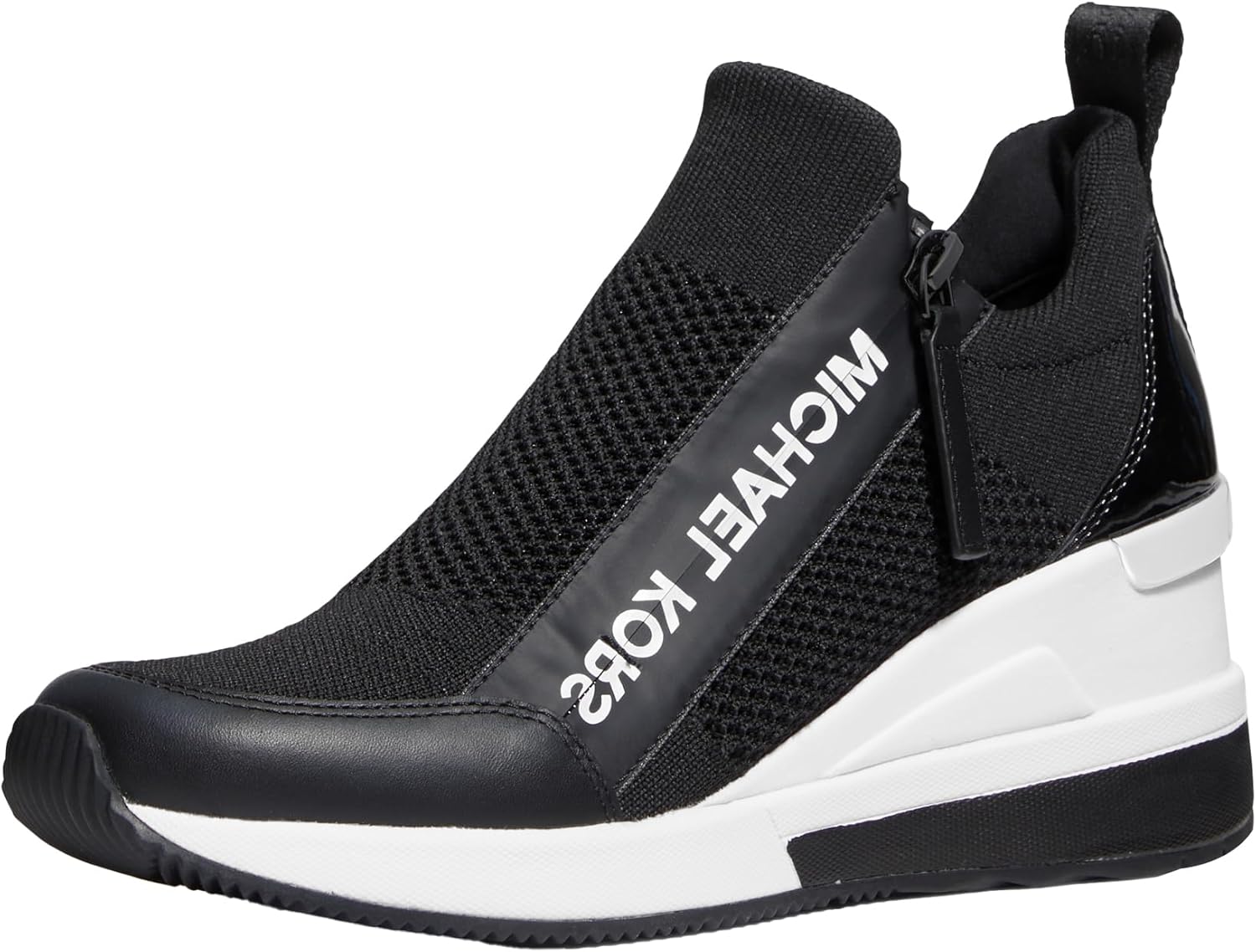 Fashion active wedge trainer featuring brand name and crafted from stretch knit for a breathable fit and feel, while a zip fastening makes them easy to slip on and off.