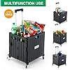 Folding Utility Cart Portable Rolling Crate Handcart Shopping Trolley Collapsible Tool Box, with Lid, Basket on 4 Rotate Wheels, for Grocery, Office, Luggage, Teacher (Black)