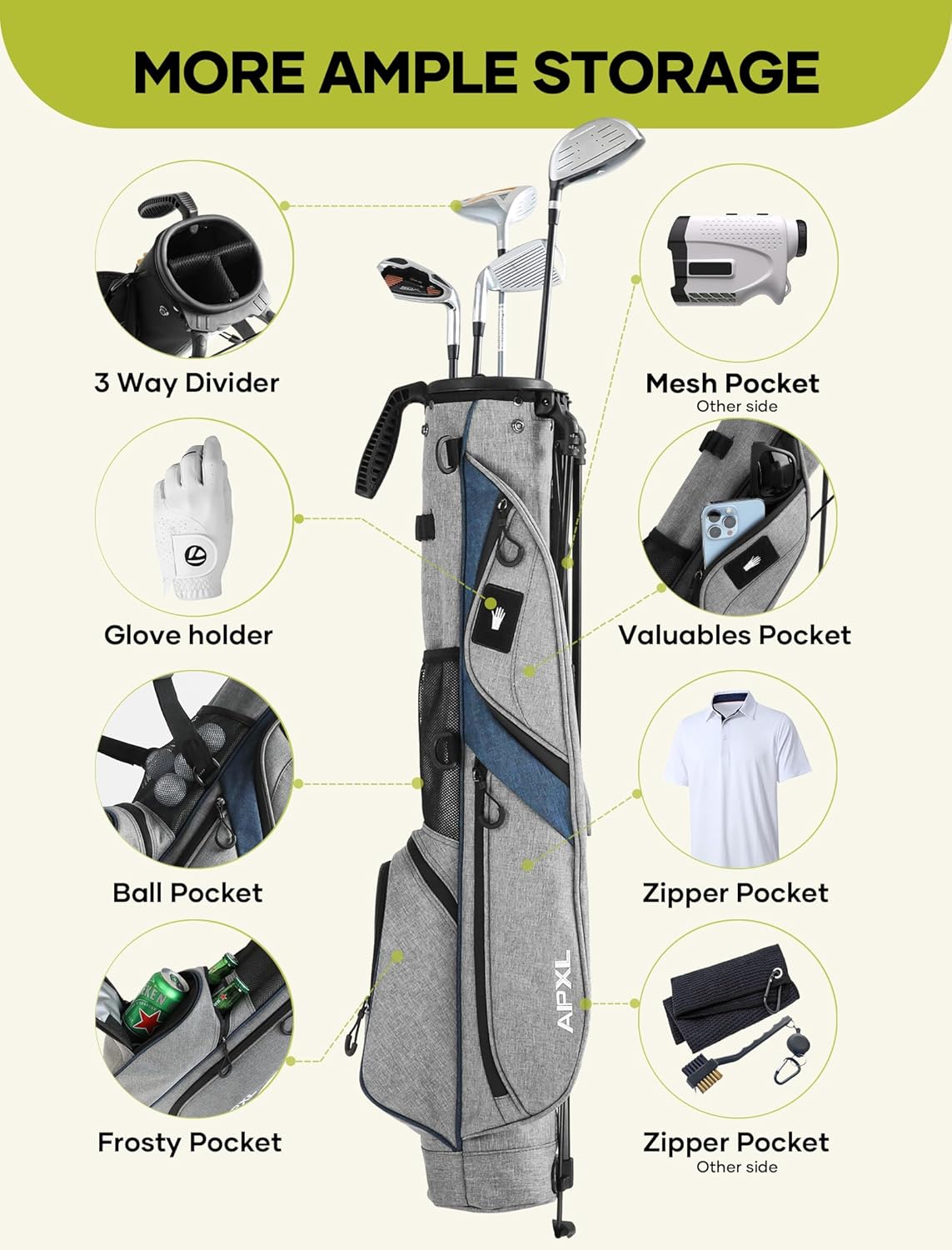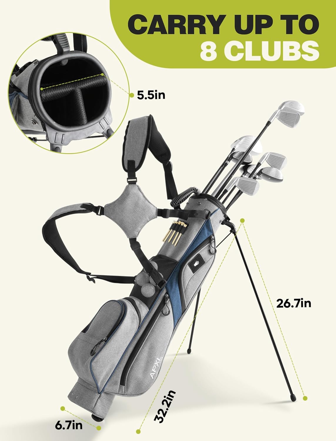 Small Golf Bag, 3 Divider Fit Up to 8 Clubs, Golf Stand Bag with Rain Cover, Easy to Carry and Durable Pitch n Putt Golf Bag, Lightweight Golf Bag with Strap and Stand for Men n Women