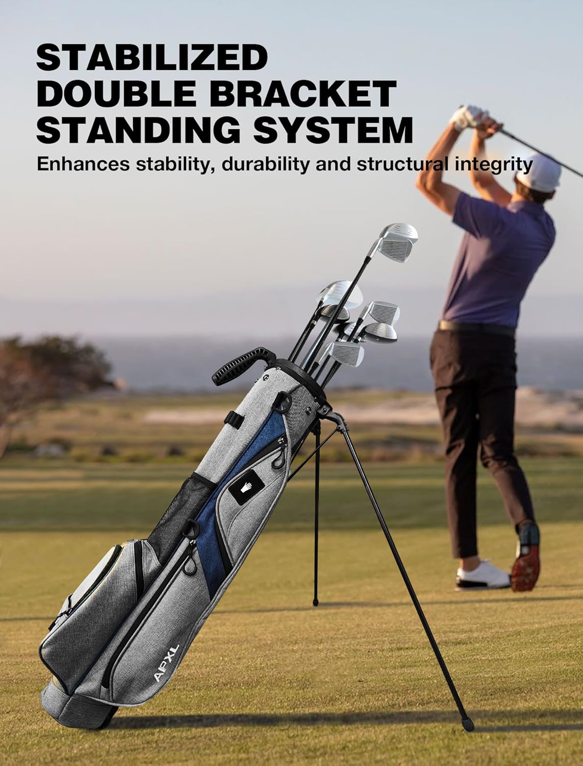STABLE STAND SYSTEM: It features a dualflex stand system, and the support rod is made of high-quality aluminum, adding durability and structural integrity to the overall design. Coupled with the anti-slip bottom design, it further enhances stability. This ensures that the stand golf bag remains securely in an upright position, allowing golfers to easily access their clubs without any wobbling or instability.