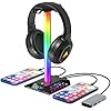 Gaming Headphone Stand PC Accessories - RGB Headset Stand with 2 USB Charger, Cool LED Headphone Holder PC Gaming Accessories Gift for Boys Men Gamers, Computer Game Hardware for Desk