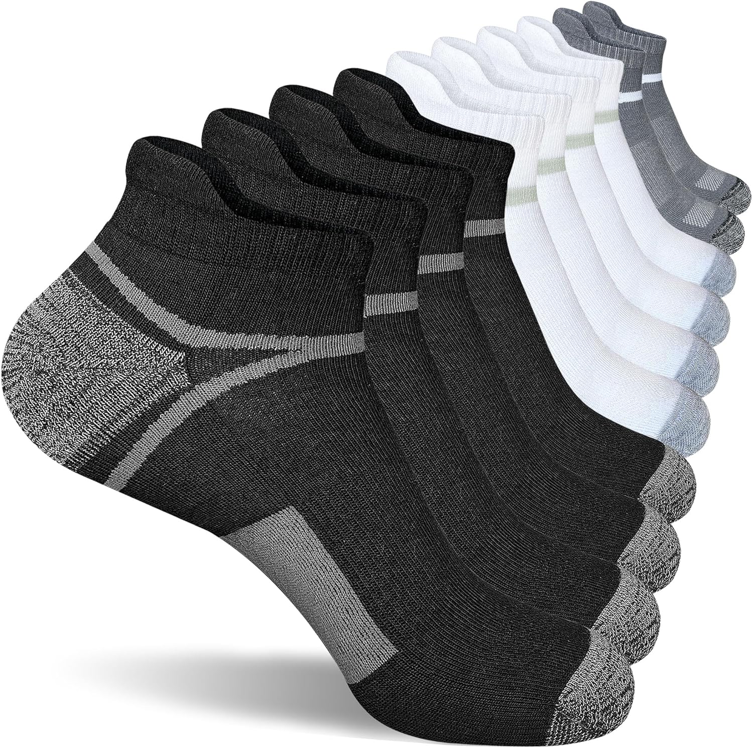 Men's Athletic Cushioned Ankle Socks Comfort Wicking Anti-Blister Running Sock 5 Pairs