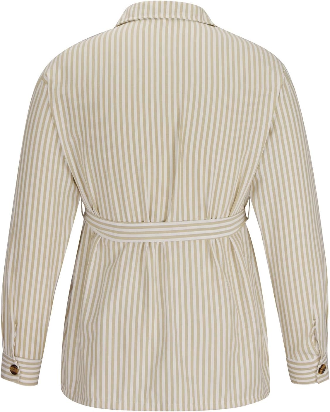 Xiaojmake Safari Jacket Men Belted Long Sleeve Button Down Corduroy Shirt Jacket Striped Midi-Length Cotton Coat with Pockets