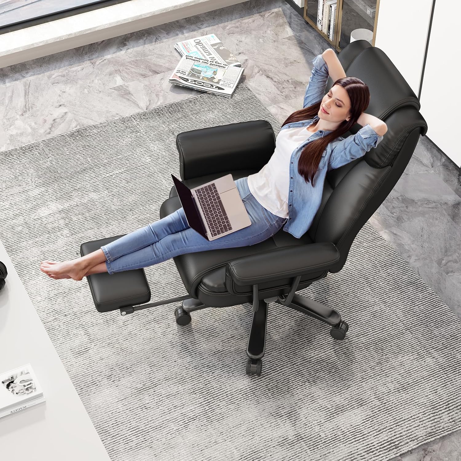 160 Degree Reclining Office Chair with Footrest: Our reclining office chair is designed for maximum comfort during those long workdays. Whether you're catching a quick break or need a power nap, this chair's adjustable recline feature has got you covered