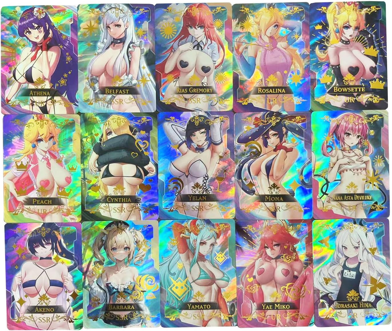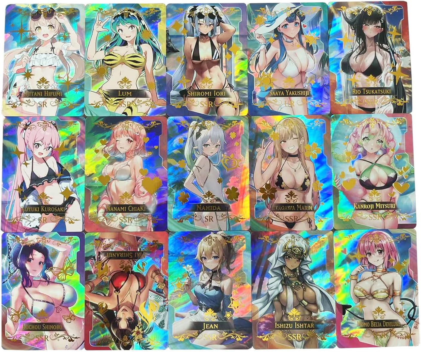 fuxi 55 piezas Tarjeta de Historia de Diosa con Carta Dorada Holográfica Brillante Colección de Tarjetas de Traje de Baño de Anime para Chicas