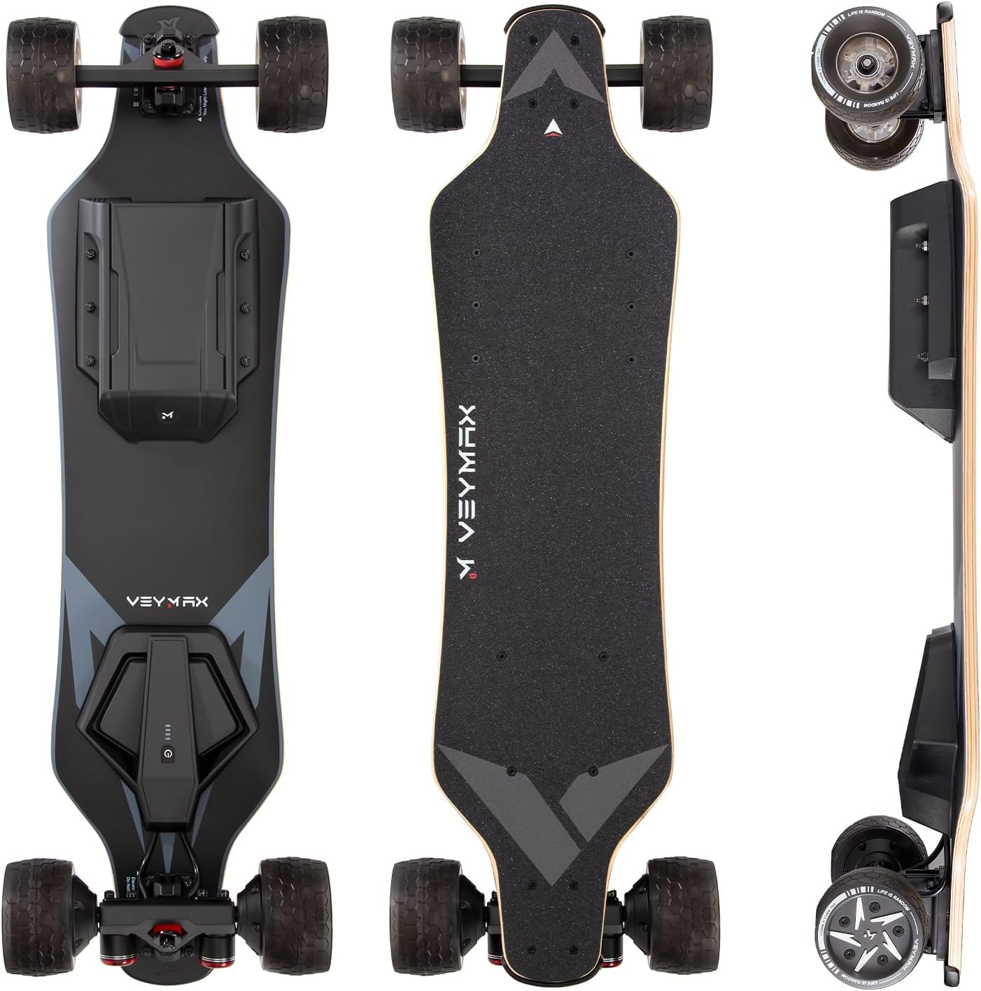 [Powerful Performance] The Roadster X4 electric skateboards with dual 550W hub motors generates a max power of 1100W and 30% hill climbing, maximum speeds of 29 Mph can be achieved. Ensure you can travel smoothly on uphill, sandy, or snowy days.