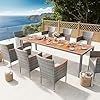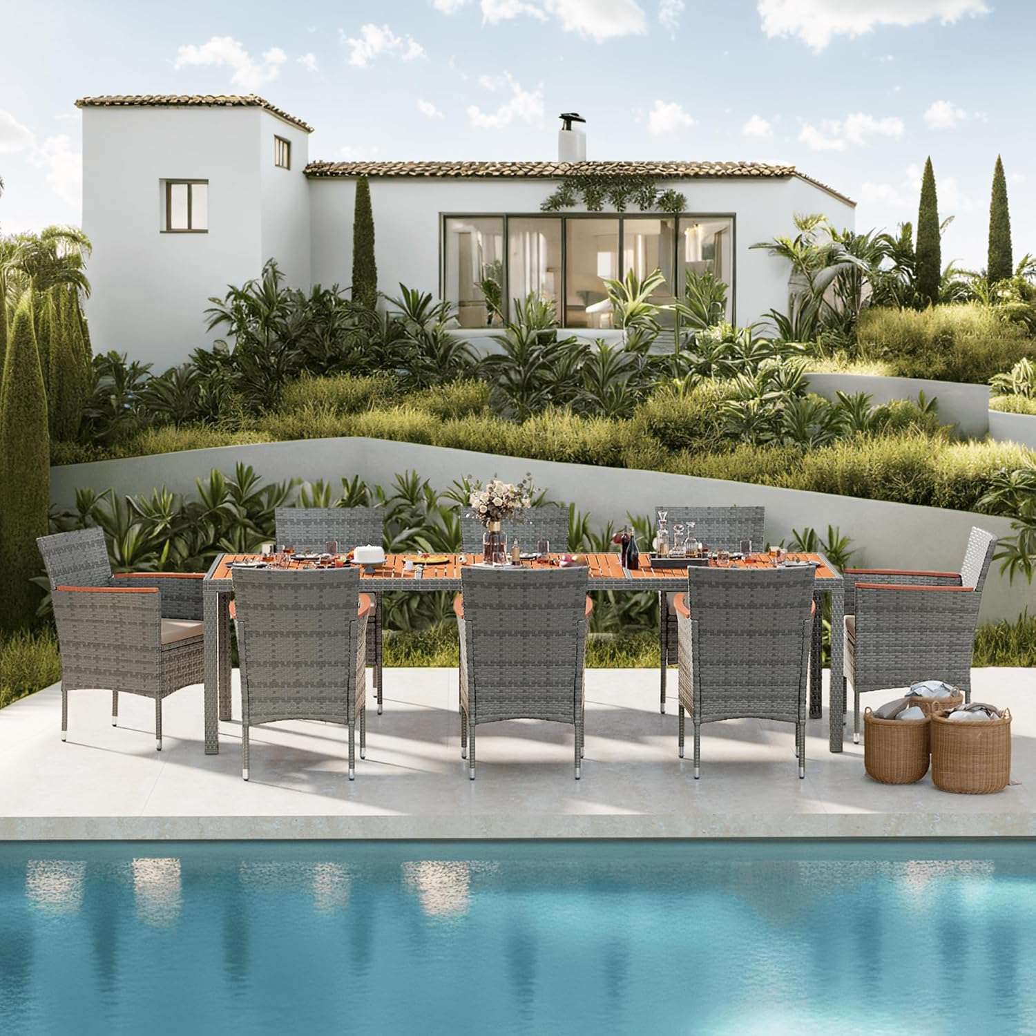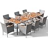 Devoko Outdoor Patio Dining Sets 9 Pieces Wicker Outdoor Dining Table and Chairs Set with Acacia Wood Table Top and Widened Armrests for Backyard, Garden, Deck (Grey)