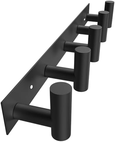 VAEHOLD Black Hat and Coat Wall Mount Rack 5 Hooks for Robes, Bags, Keys, and Towels Bathroom Towel Hanger Organizer (1 Pack)