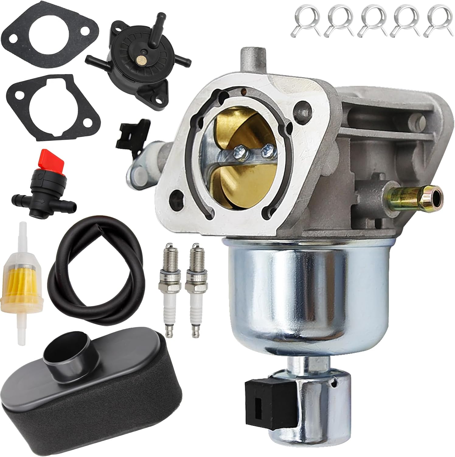 [Package Include] 1 x Carburetor, 1 x Air filter, 1 x Pre filter, 1 x Fuel filter, 1 x Fuel pump, 1 x Fuel line, 4 x Clamps, 2 x Spark Plug, 2 x Gaskets