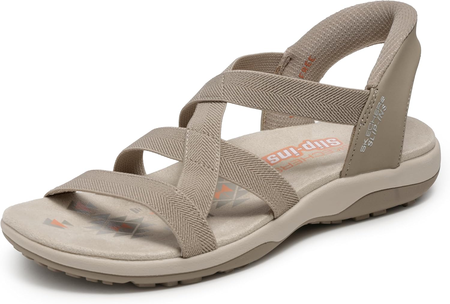 Make your style and comfort out of sight with Skechers Reggae Slim - Stretch Flex with Hands Free Slip-Ins technology - Just step into this sandal no hands needed. This sandal features a soft stretch fabric upper with a cushioned Skechers Memory Foam® footbed.