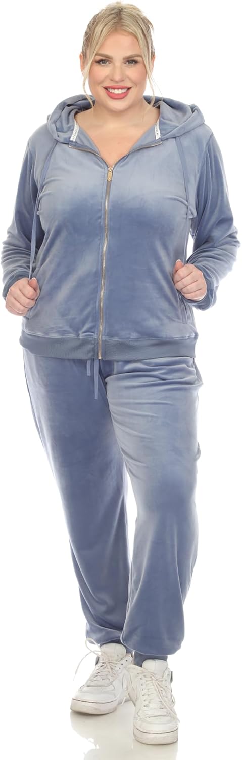 white mark Women's Plus Size 2-Piece Velour Tracksuit Jogger Outfit Activewear Set