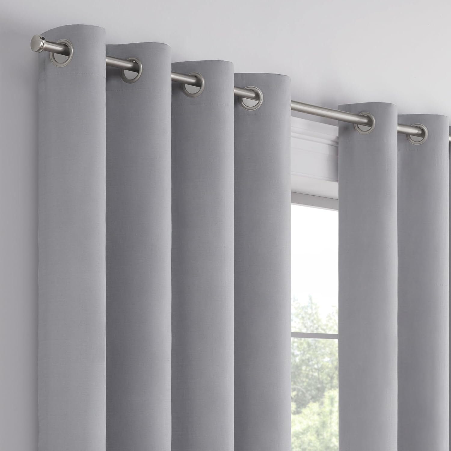 Find the perfect combination of style and function with the Eclipse Dutchess Solid 100% Blackout Lined Sheer Grommet Curtains. Our blackout curtains provide privacy, manage light, reduce noise, and help with energy savings while bringing a fashionable look to your home décor. Block out unwanted light with the textured sheer fabric lined with 100% Blackout liner, an ideal solution for your bedrooms, media rooms, or anywhere where light could be seen as a distraction. The Thermalayer curtains feature multiple layers of thermal fabric to combine Eclipse technology and design that helps keep the summer heat and winter chill out of your home and maximize comfort, giving you a superior night’s sleep. Each lined panel measures 84" x 50". The 1.5" metal grommets make it easy to open and close your curtain panel and are recommended to be paired with a 1.25" rod for maximum movement. Curtain rod sold separately. Our 100% Polyester curtains are machine washable. Discover Eclipse Curtains, our comprehensive family of functional window treatments provides privacy, manages light, reduces noise, and helps with energy savings. Design the perfect room environment with solution-oriented curtains without compromising style.