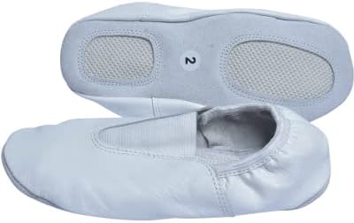 TW premium leather, this gymnastics shoe is super soft and lightweight, very comfortable to wear and easy to carry. This women and men athletic shoe features elasticized front panel for flexible movement, and elastic strap around the top back of the shoes to hold feet in place while dancing. The shoes don't slip off when you are jumping. The outsoles have great grip, you can use these gym shoes for gymnastics, ballet, dance, jazz, tumbling or trampoline.