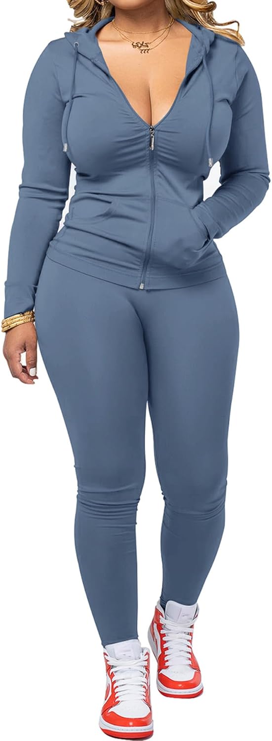 PINSV Women Two Piece Outfits Workout Sets Bodycon Tracksuit Long Sleeve Zip Up Hoodie Jacket Jogger Matching Sweat Pants Set