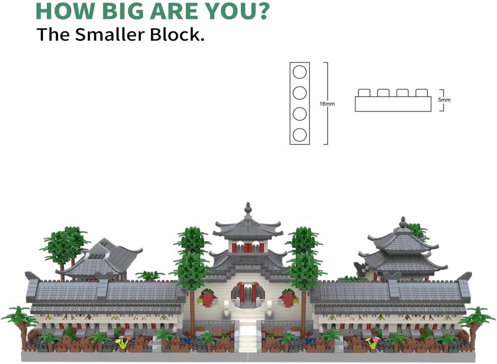 High quality: Architecture Suzhou garden building block micro block set with 100% ABS plastic bricks are made of high-quality green materials with bright colors, good flexibility and not easy to damage. Its smooth surface and rounded corners make it safe for children