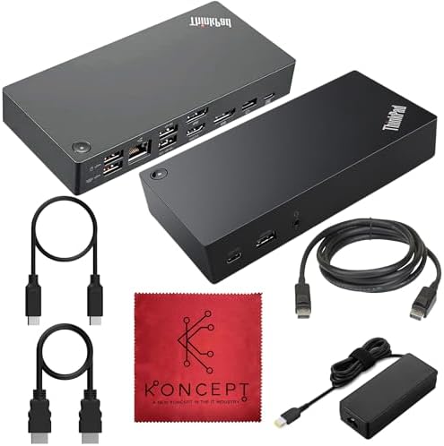 [Package Includes] - Lenovo Dock Station 40AS0090US, Original Lenovo 90, 1x HDMI Cable, 1x Displayport Cable, USB C Cable, Microfiber Cleaning Cloth.