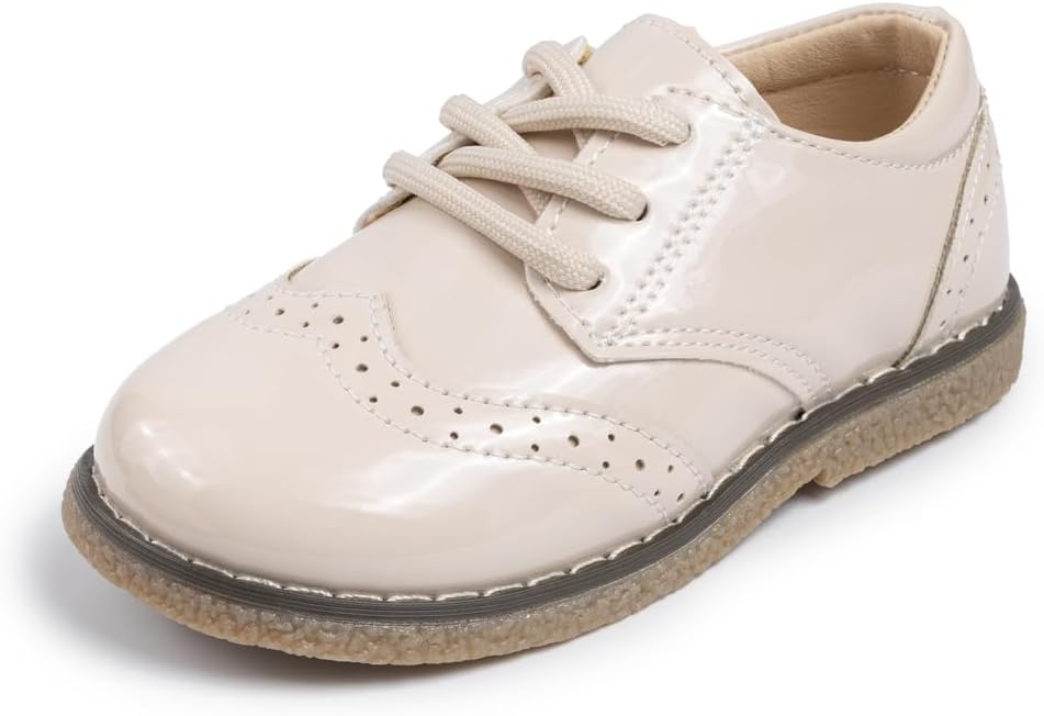 Kannior Boys Girls Oxford PU Leather Shoes Little Kid Wedding Dress Shoes Toddler Lace Up Non-Slip Texture Sole Loafer Flats Classic School Uniform Walking Shoes