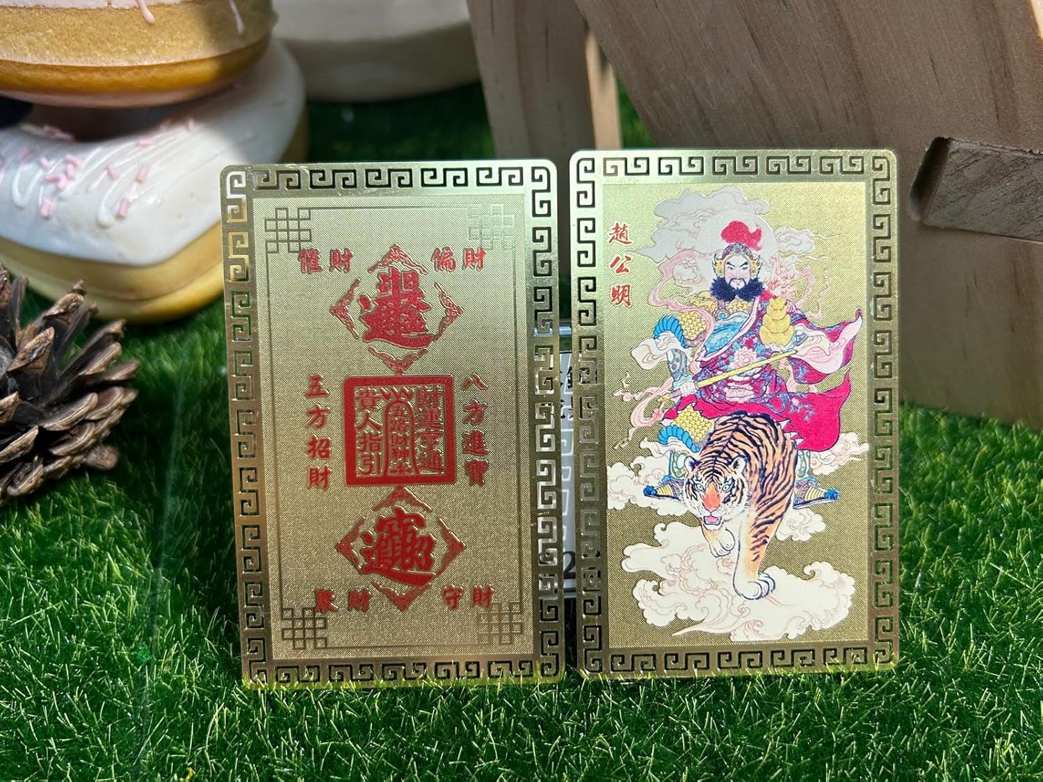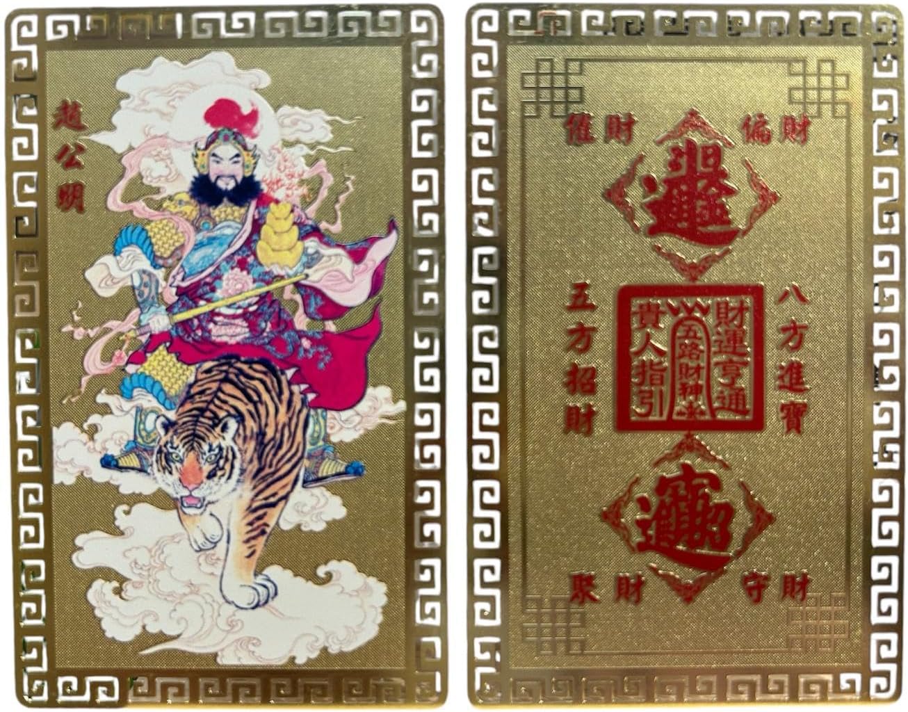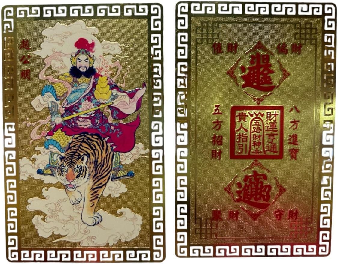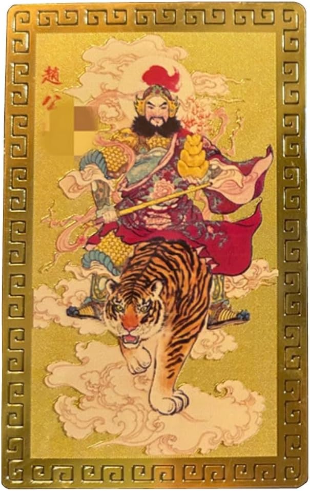 DMtse Chinese Feng Shui God of Wealth Caishen Zhao Gongming Army General Riding A Tiger Amulet Card for Good Luck Auspicious Success