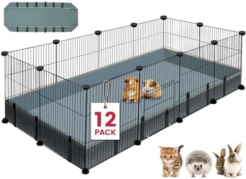 12 Panels Small Animal Playpen,Pet Playpen with Waterproof Mat,C&C Cage for Guinea Pigs,Puppy Play Pen,Bunny Playpen,Indoor Outdoor Portable Metal Wire Yard Fence