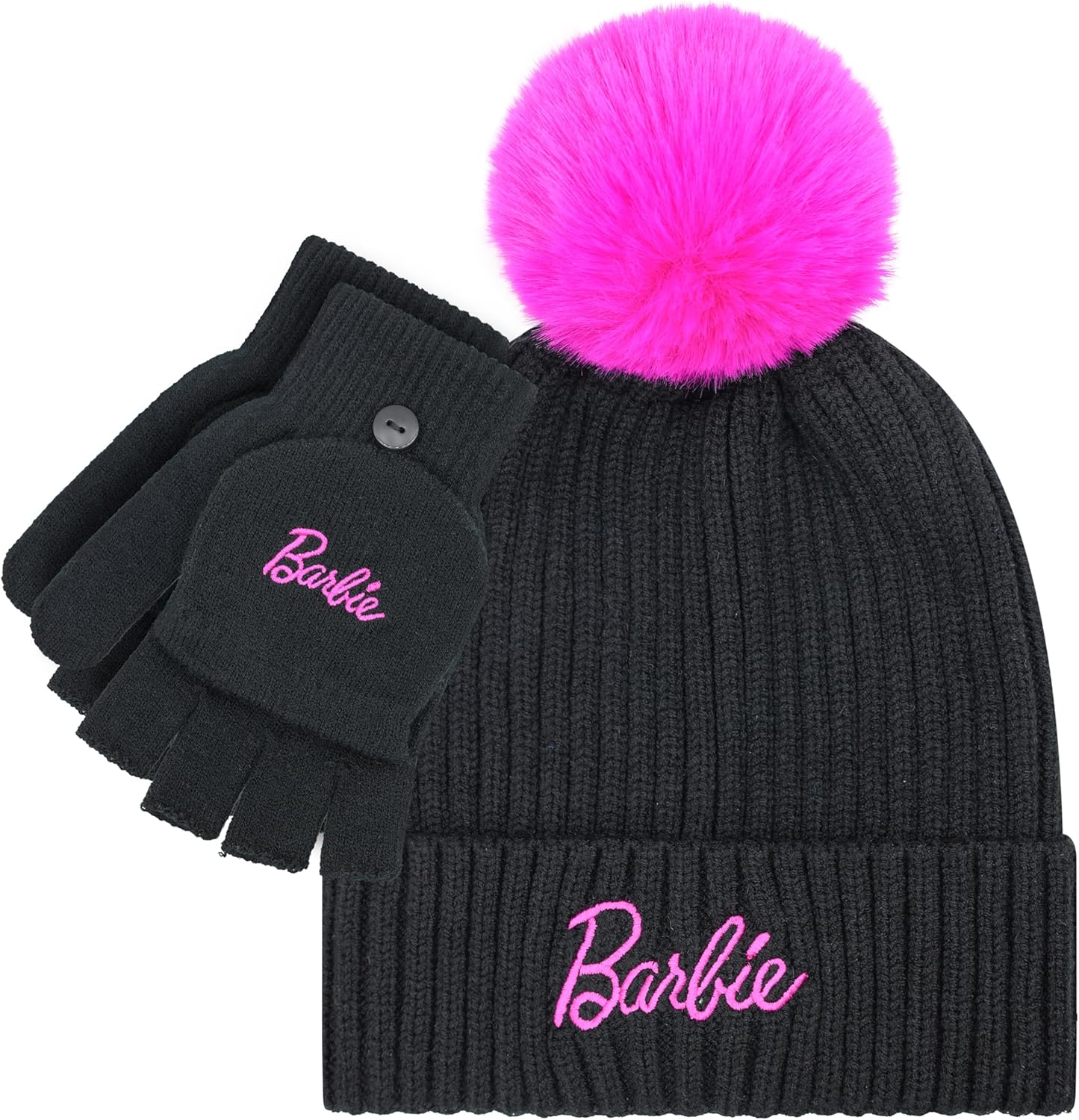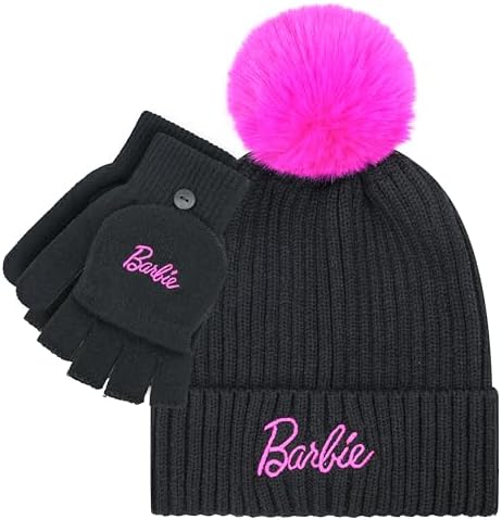Barbie Winter Hat for Women – Winter Beanie Hats for Women with Gloves, Warm Beanie Hats, Pink Knitted Beanie