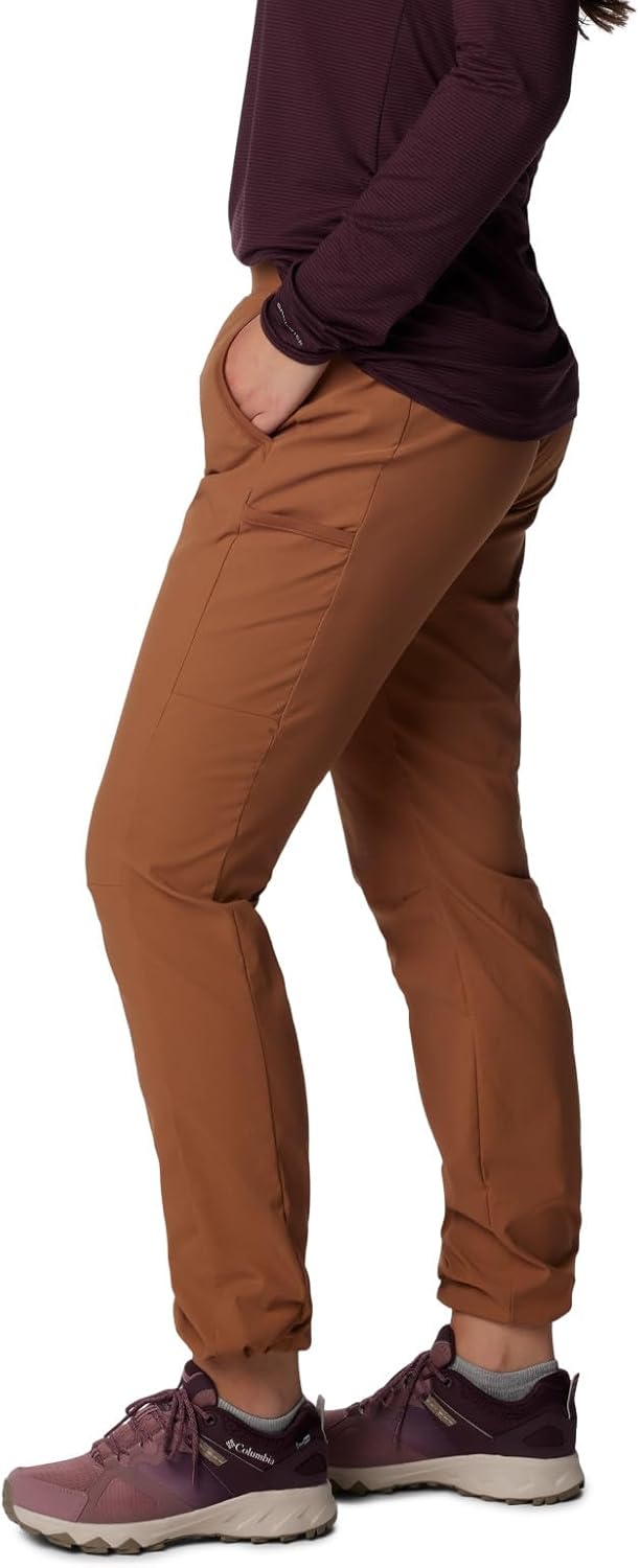 Versatile enough to go anywhere, durable enough to do anything, these Columbia women’s hiking pants are made from sun-blocking, rain-and-stain repelling nylon fabric. They offer plenty of pockets for small essentials and cinchable cuffs. Columbia offers these pants in multiple colors and sizes. Extended sizing available. Active fit.