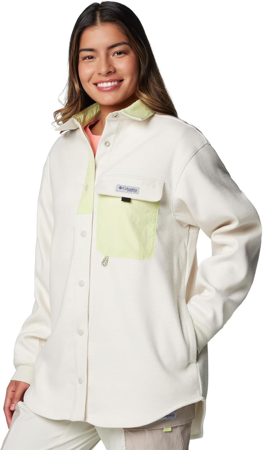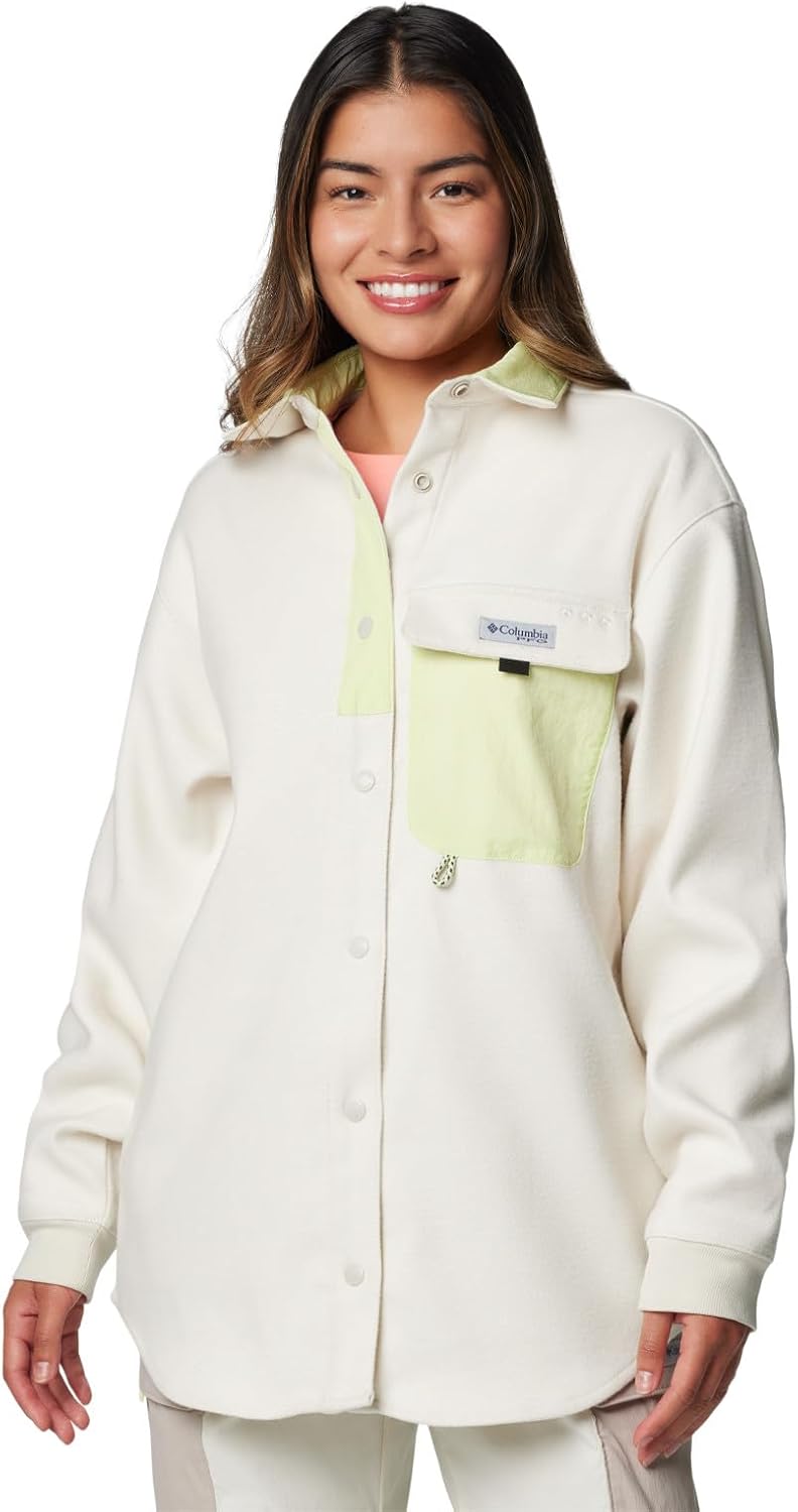 A warm and versatile shirt jacket, this Columbia women’s button-up is an ideal addition to your outdoor wardrobe. It offers cozy hand pockets, a utility loop, and a relaxed fit that’s at home on the water, streets, and trails. Columbia offers this shirt jacket in multiple colors and sizes. Relaxed fit.