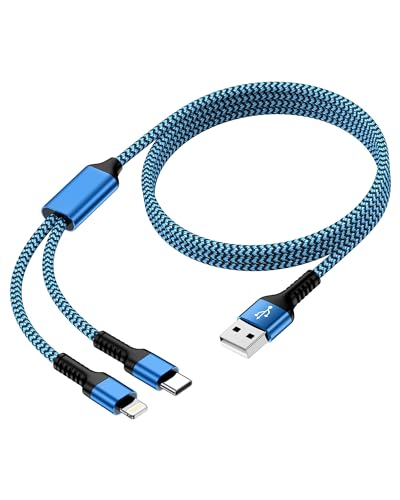 Cable de Carga Multi USB a USB C y Lightning, Cable Rápido USB 2 en 1 de 4 pies Trenzado con Puertos USB-C/Lightning para iPhone 16 Pro Max 15 14 13 iPad Cable de Carga para Múltiples Teléfonos-No Compatible con CarPlay