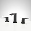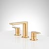 Complete your bathroom upgrade with the Berwyn Widespread Faucet. Made of durable metal, this fixture is sure to act as the centerpiece of your sink thanks to its eye-catching, angular silhouette and ultra-modern design. Two lever handles control the water pressure and temperature, making it an easy-to-use addition to any space. Choose your favorite corrosion-resistant finish to complete the look. Signature Hardware 953647 Features: Covered under Signature Hardware's 25 year limited warranty Faucet body constructed of metal with metal lever handles Widespread faucet mounting type - 3 hole faucet with 8" centers Deck mounted installation - faucet mounts directly to sink or countertop Dual lever handles control the flow and temperature of water Drain assembly included Signature Hardware 953647 Specifications: Height: 4-9/16" (deck to top of faucet) Spout Height: 3-13/16" (deck to spout outlet) Spout Reach: 4-5/16" (faucet base to spout outlet) Flow Rate: 1.2 gallons-per-minute Faucet Centers: 8" (distance between centers of outside faucet holes) Maximum Deck Thickness: 2-1/8" Holes Required: 3