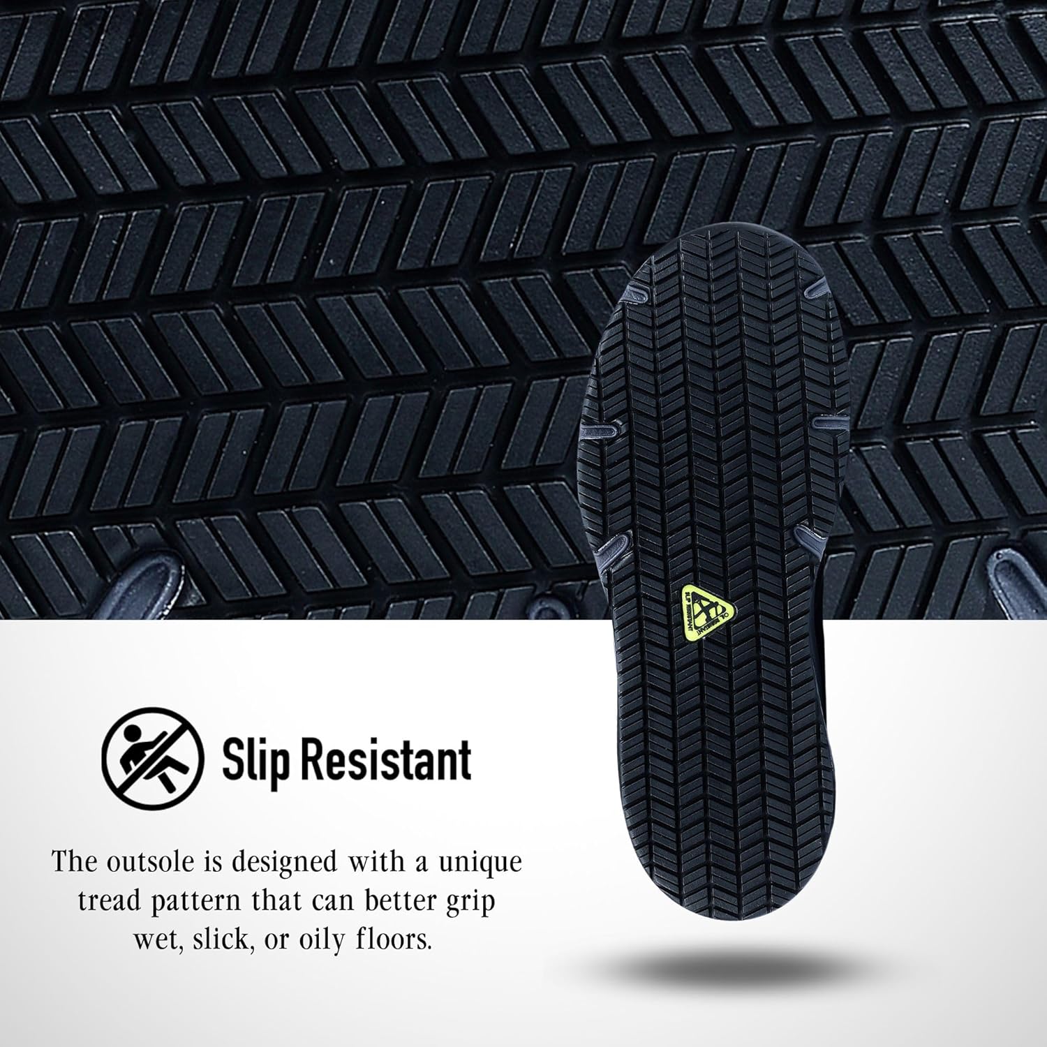 Created to deliver all-day comfort, New Balance Evolve safety toe shoes offer a modern and light go-to option without compromising on durability and style. Featuring electrical hazard protection, a lightweight alloy toe and slip-resistant outsole, this shoe offers excellent protection whilst giving you the confidence to get the job done. New Balance ACTEVA performance midsole technology provides the ideal mix of support, cushioning and flexibility with a New Balance EVA comfort insert that's perfect for long days on your feet. A heel counter support provides additional stability on any jobsite and pull tabs on the heel and tongue make them easy to get on and off. Meets ASTM F2413-18 EH and ASTM F3445-21 SR standards – providing slip resistance and protection against electrical hazards.