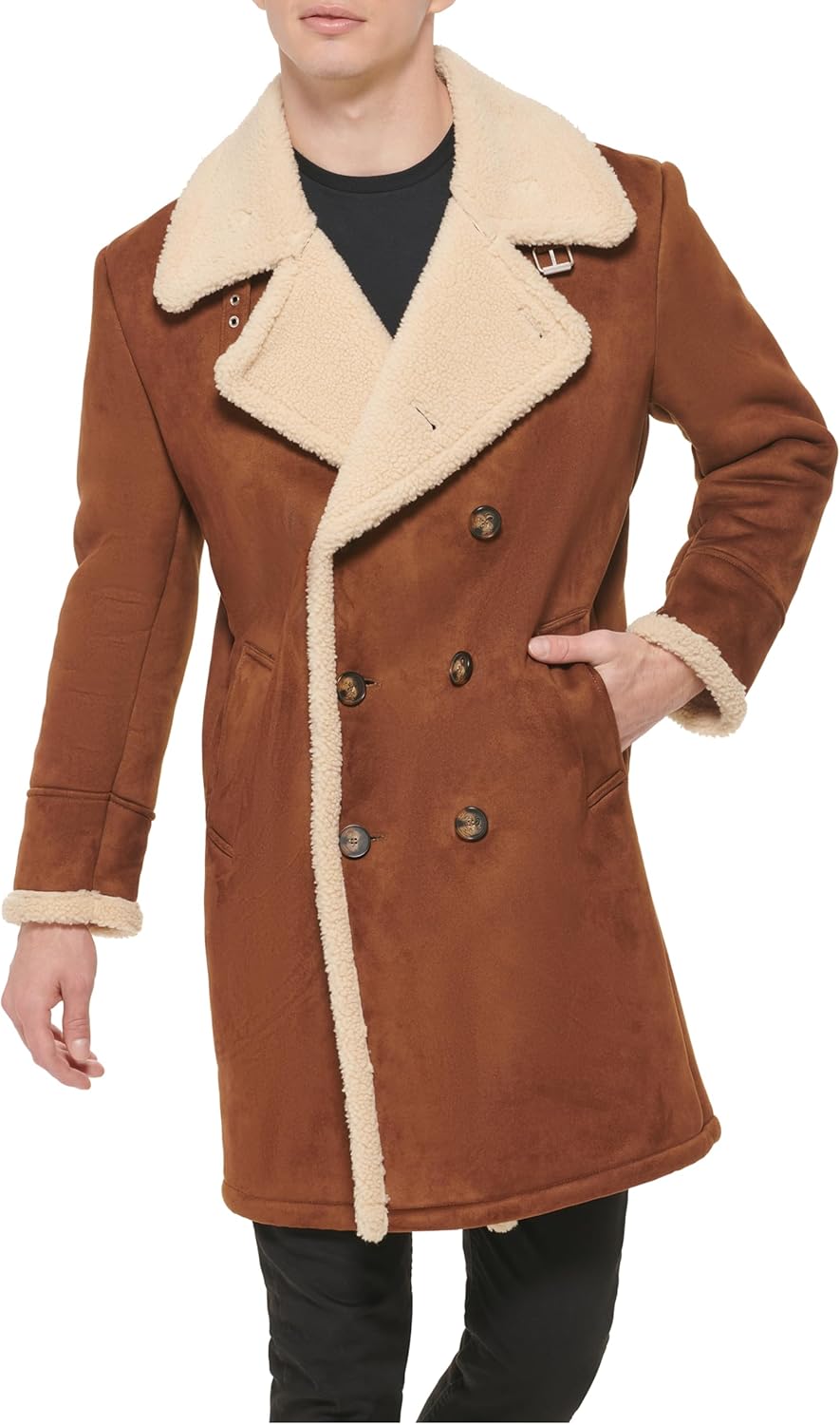 This Men's Outerwear COAT is a FAUX SHEARLING WARM DOUBLE BREASTED